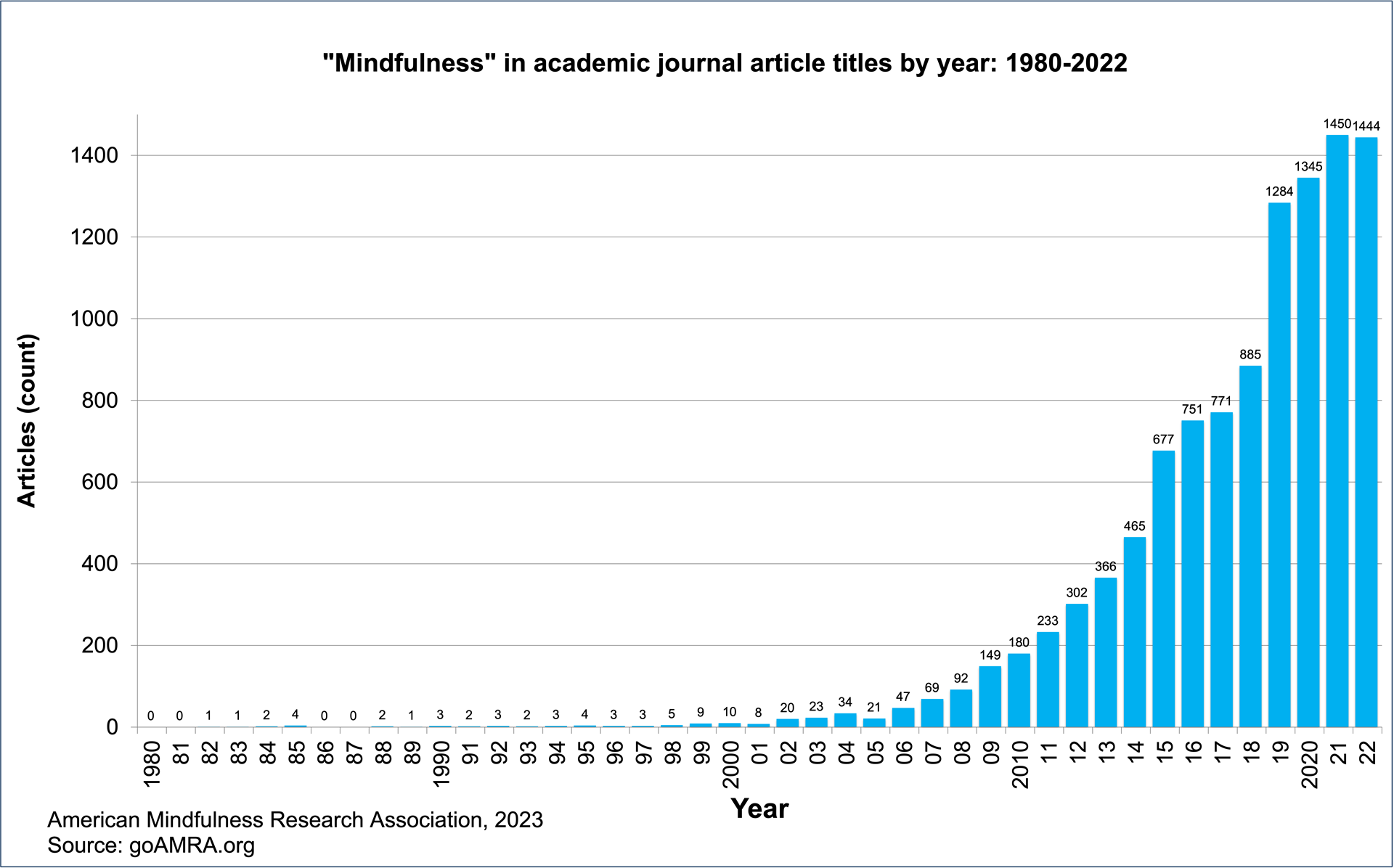 Figure 1: Mindfulness in academic journal articles by year: 1980-2022